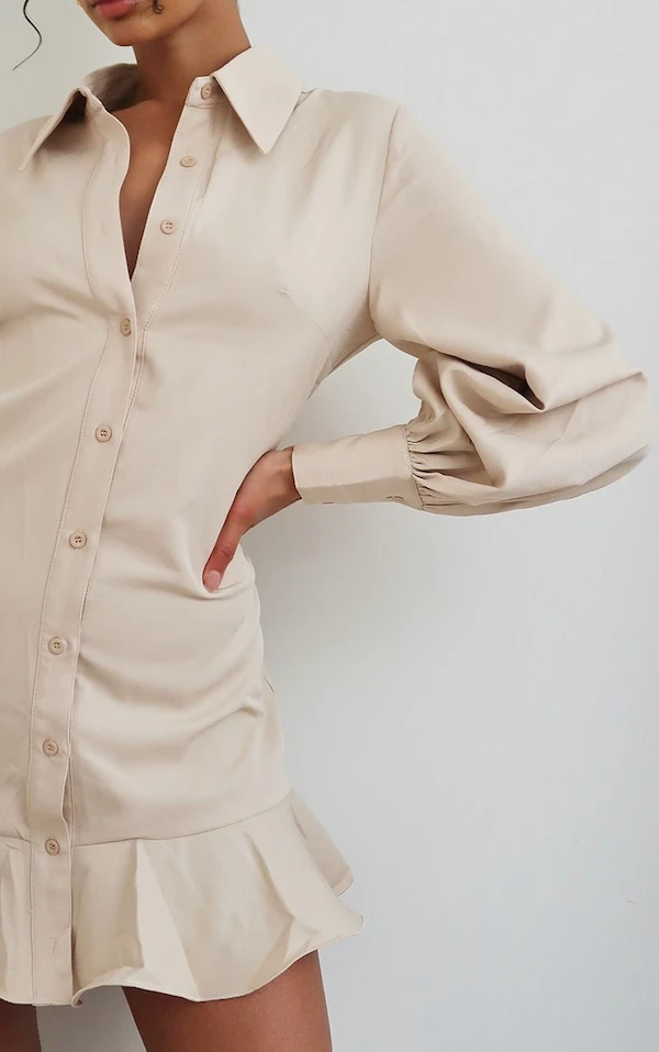 Cette douceur, le gris pierre! Sur cette robe chemise aux volants rétro et au mood minimal, c’est parfait pour les fans de look nude. On enfile des talons et go!