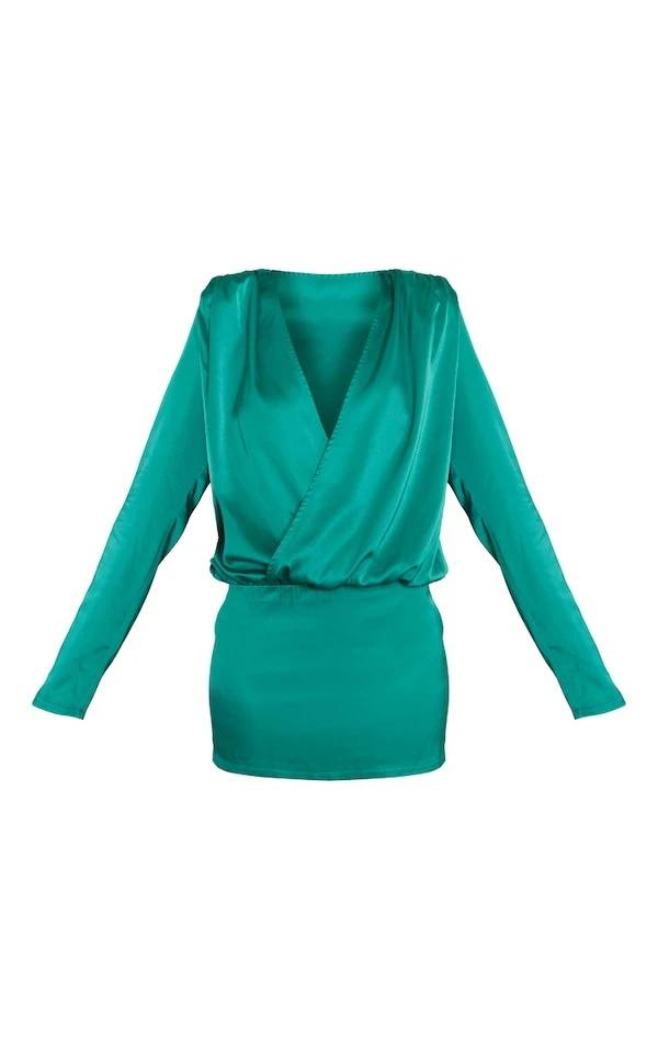 Robe chemise oversize décolletée satinée verte à épaulettes