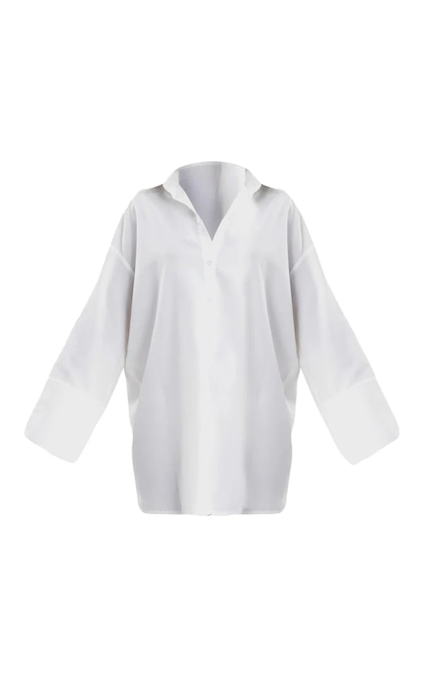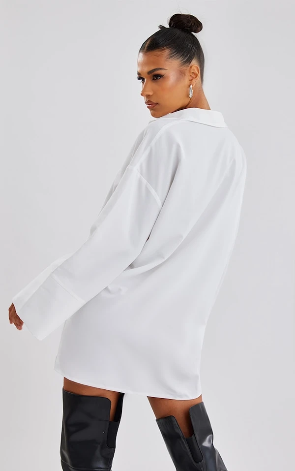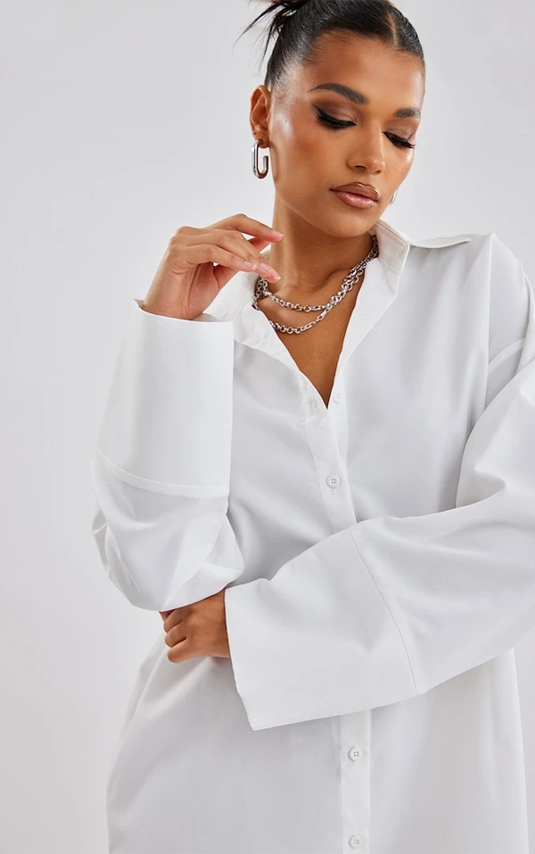 Robe chemise oversize en popeline blanche à mancherons larges