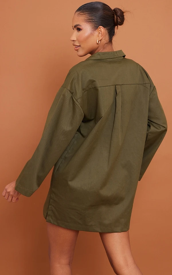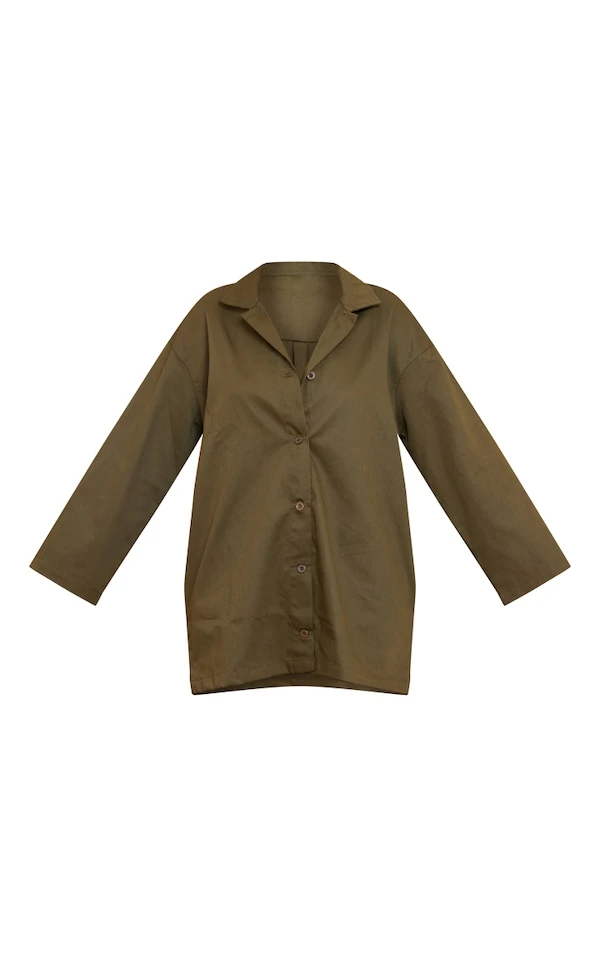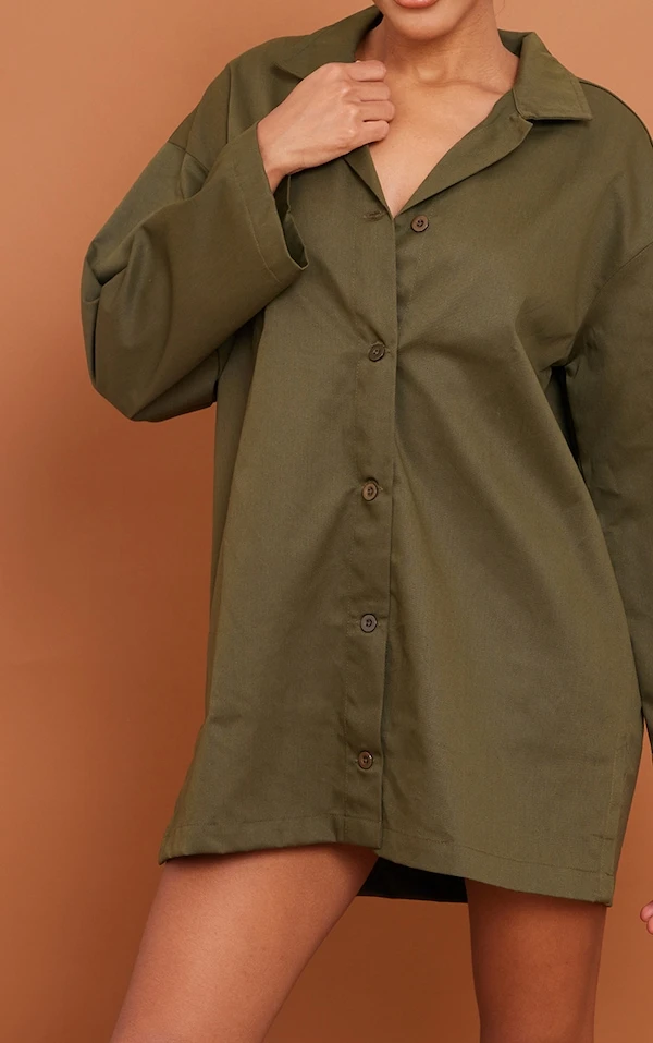 Robe chemise oversize kaki tissée fendue