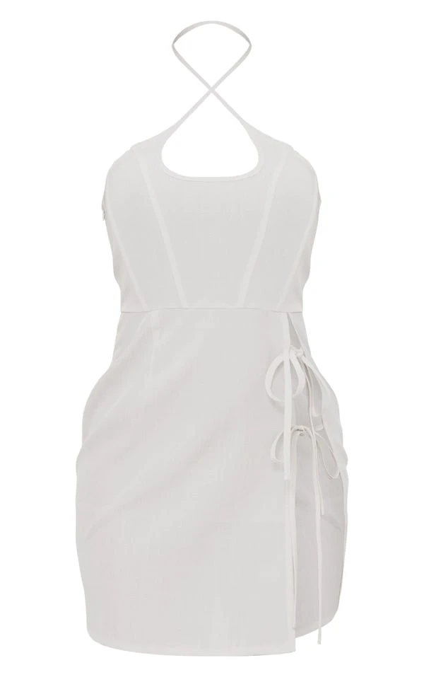 Robe corset moulante en effet lin crème à dos nu et liens noués