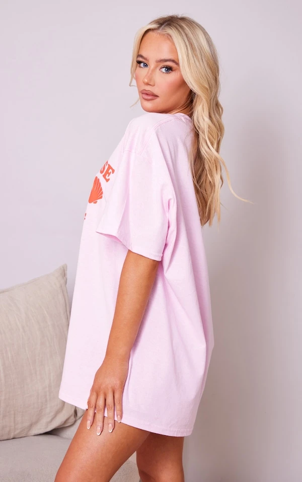 Robe de chambre style t-shirt rose à slogan « Pearl-ease Let Me Sleep » imprimé