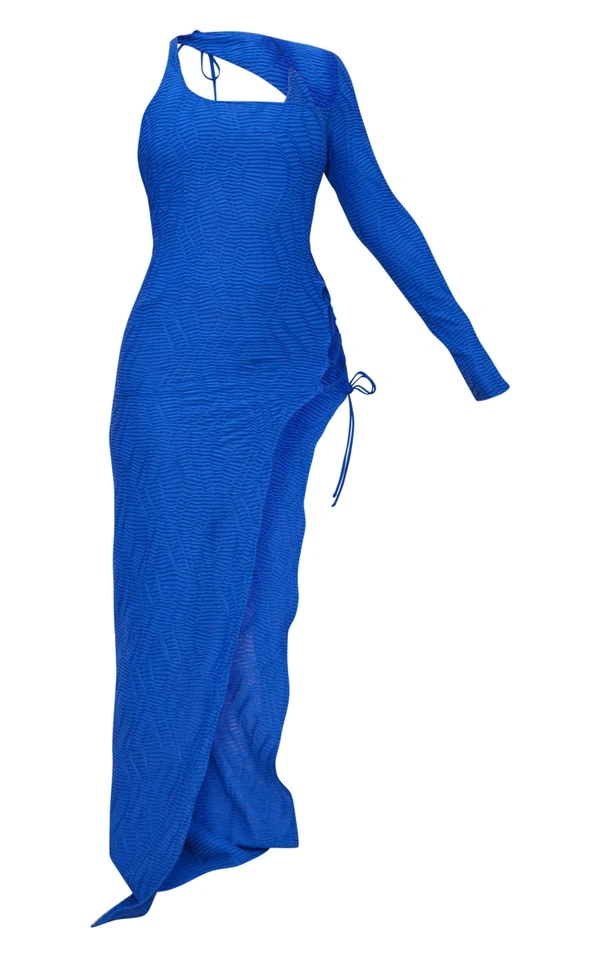 Robe de plage asymétrique longue texturée bleu cobalt à taille basse