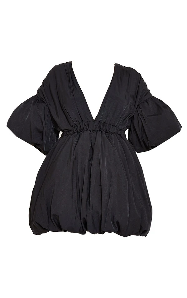 Robe droite noire à manches et jupe bouffantes