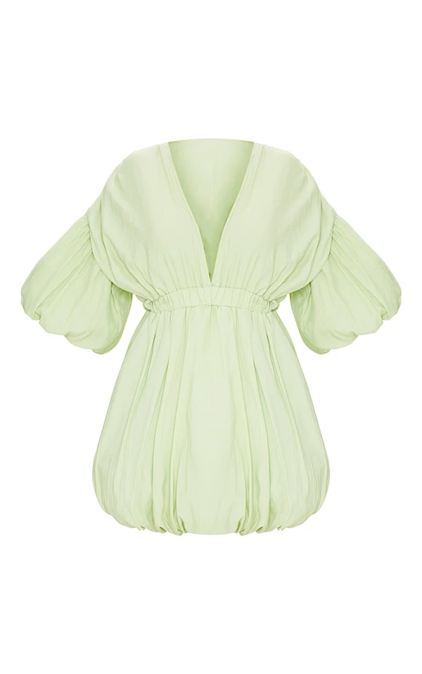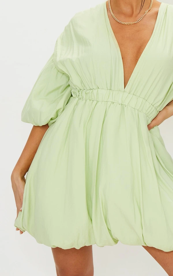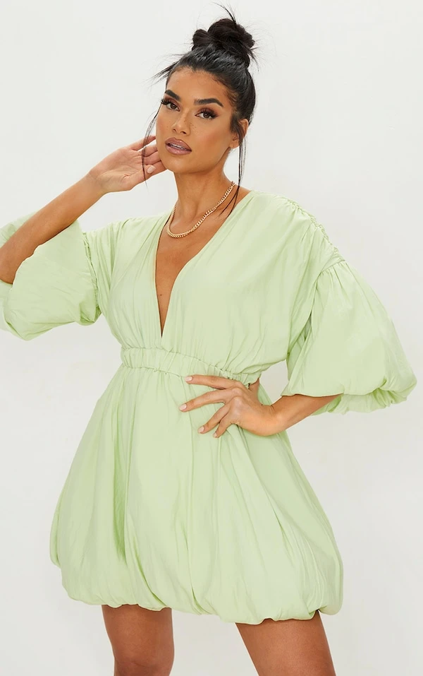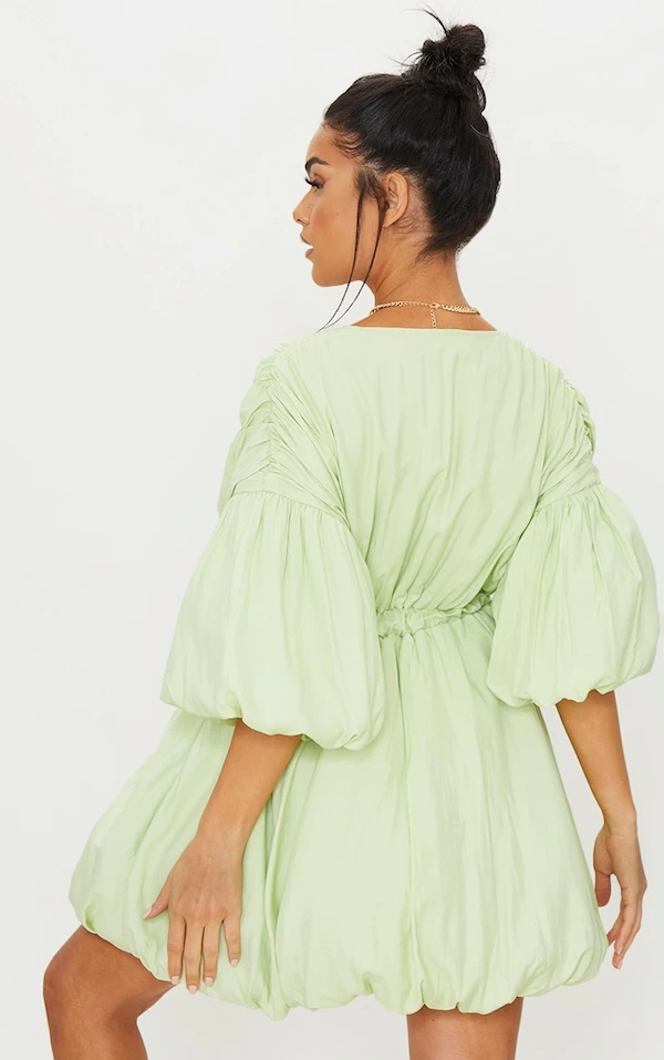 Robe droite pistache à manches et jupe bouffantes