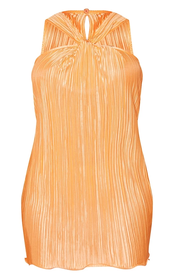 Coup de coeur sur cette robe à la coupe droite. Avec sa matière plissée de couleur orange, son design sans manches et son col torsadé, on est fan. C’est à porter avec une paire de sandales à lacets et quelques accessoires dorés. Le look est parfait, comme vous !