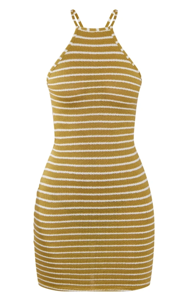 Robe droite vert olive rayée à dos nageur et ouvert