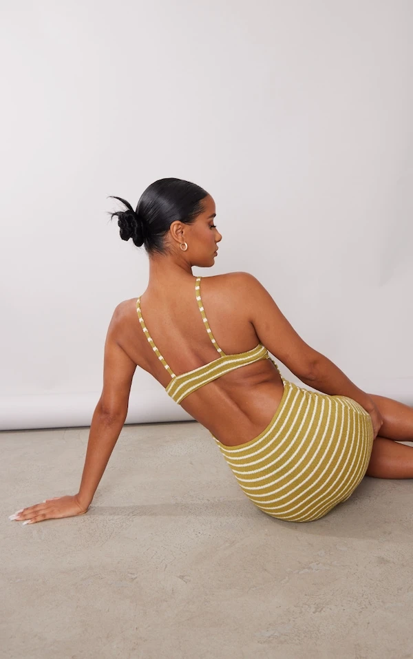 Coup de coeur sur cette robe à la coupe droite. Avec sa couleur vert olive, ses rayures et son design à dos nageur ouvert, on l’adore. Portée avec une paire de sandales lacées et quelques accessoires, cette robe vous assure un max de style en soirée. Vous avez tout compris à la mode, vous !