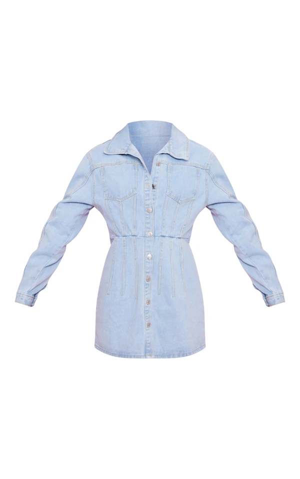 Robe en jean bleu clair délavé cintrée à détail coutures