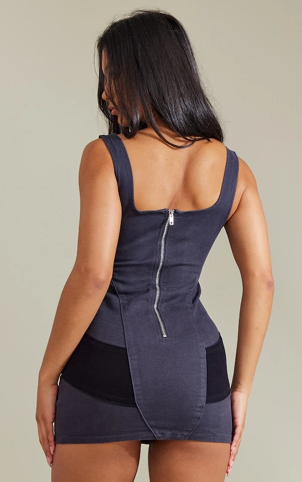 Entre vous et cette robe, ça a tout de suite matché ! On adore sa matière en jean et ses parties contrastantes qui font toute la différence. Elle se porte avec une paire de bottes à talons pour un look années 2000 ultra tendance. Vous êtes sublime !