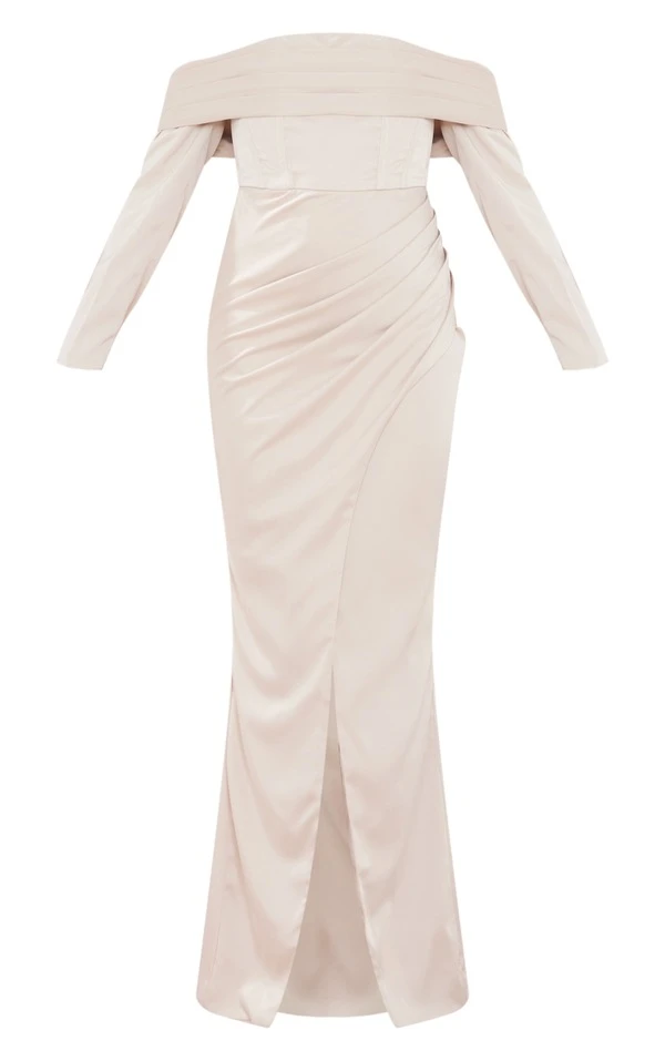 La classe à l’état pur dans cette robe longue. On est très fans de son coloris champagne so luxe, de son design fendu hyper stylé et de son col bardot qui ajoute un max de glam à votre tenue. Elle se porte avec une paire de talons toute simple et des boucles d’oreilles tombantes pour un look absolument magnifique. On valide à 100%.