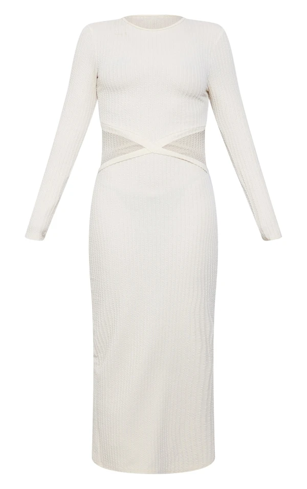 Look glam en toute simplicité dans cette robe longue ! Sa matière côtelée texturée vous va hyper bien et on adore son coloris crème et son design à découpes croisées très original. Plus qu’à enfiler une paire de baskets et une paire de lunettes de soleil. Magnifique !