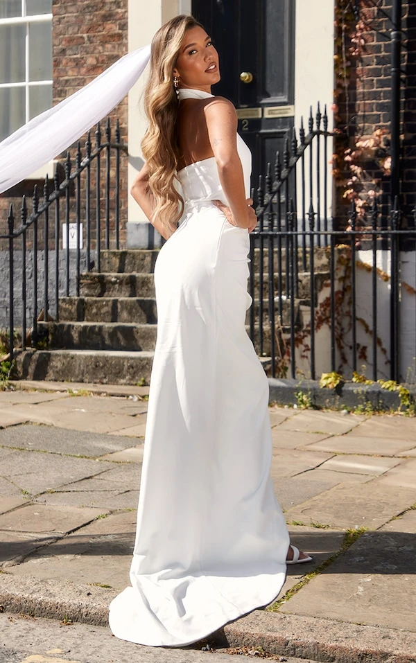 On craque pour cette robe longue ! Avec sa couleur blanche, son col montant et son effet drapé, elle a tout d’une pièce culte. Il vous suffit de la porter avec une paire de d’escarpins et quelques accessoires argentés et le tour est joué. Tous les regards se posent sur vous !
