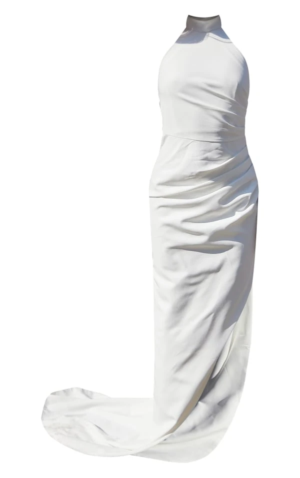 Robe longue drapée blanche à col montant