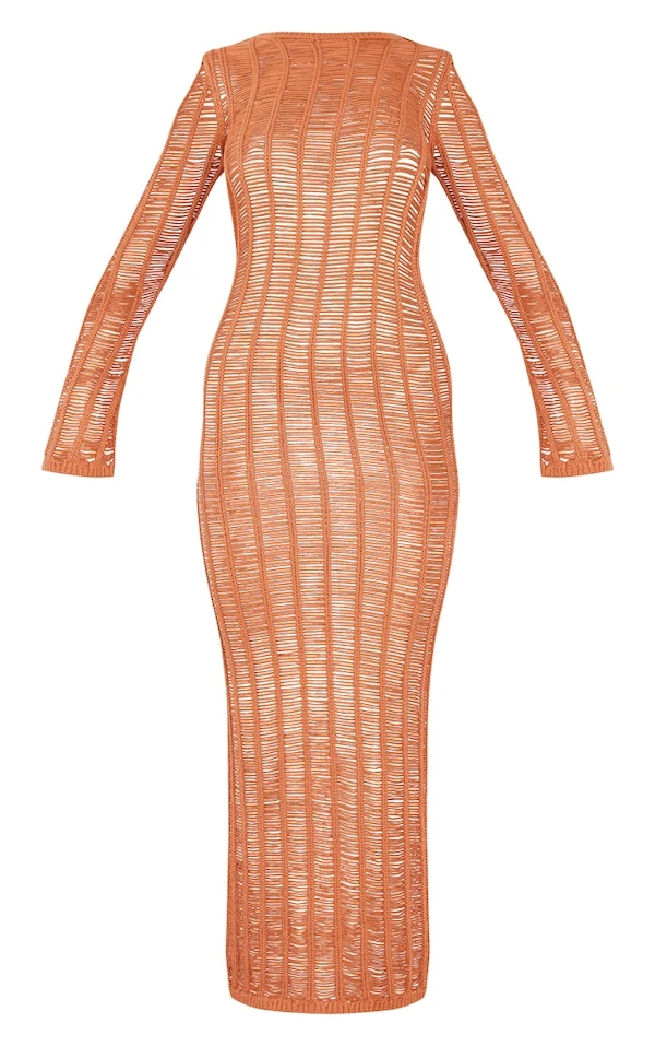 Sublime, le look de cette robe ! Elle sent très bon les vacances avec sa maille tricot canon, son coloris marron clair délicieux et son design à dos nu très flatteur. Elle s’associe tout simplement à une paire de sandales et à votre bikini préf. C’est si beau !