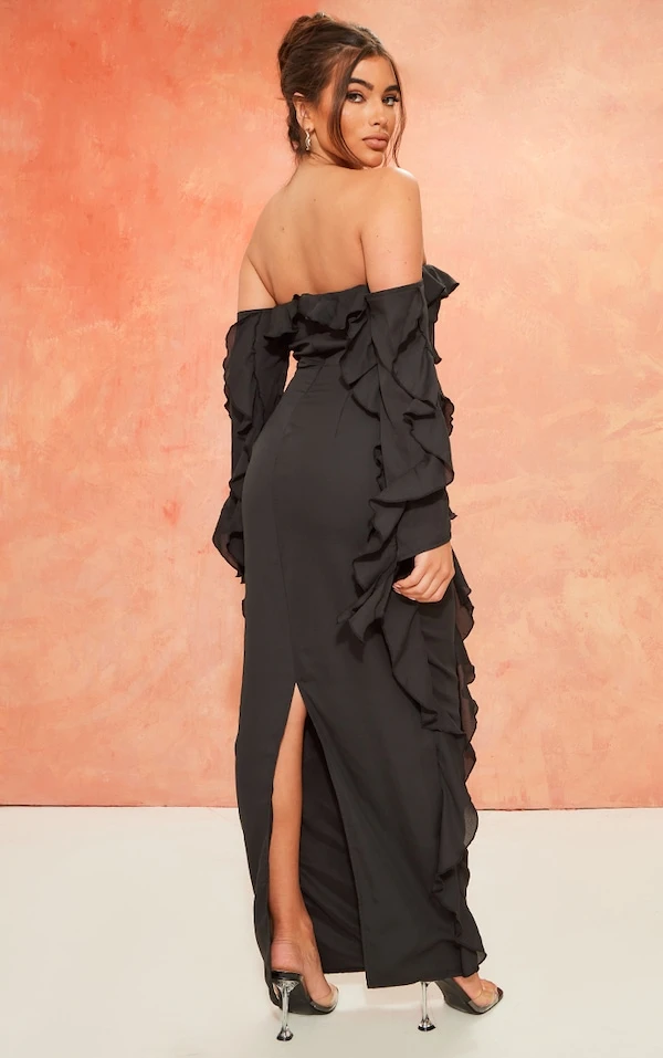 Trop belle, cette robe à la coupe longue. Avec la couleur noire indémodable de sa matière en mousseline de soie, son style corset et son design à manches longues, elle a tout pour plaire. Pour vous démarquer en soirée, cette robe est exactement ce dont vous avez besoin !
