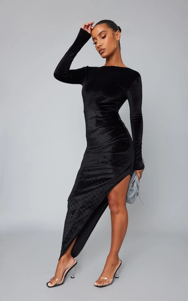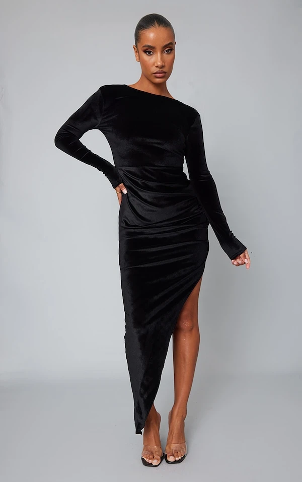 On craque pour cette robe longue ! Avec sa matière en velours, son effet fendu et son dos rond, elle fait un sans-faute. On la porte avec une paire de talons et une petite pochette pour un look de soirée ultra glam digne des célébrités. Wow, juste wow !