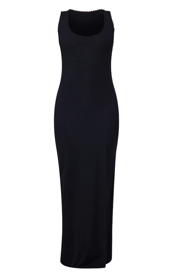 Divinement belle dans cette robe à la coupe longue canon ! On aime trop son design à fente et son coloris noir qui va avec tout ! Portez-la avec des baskets noires et blanches et un petit sac coloré, tout simplement !