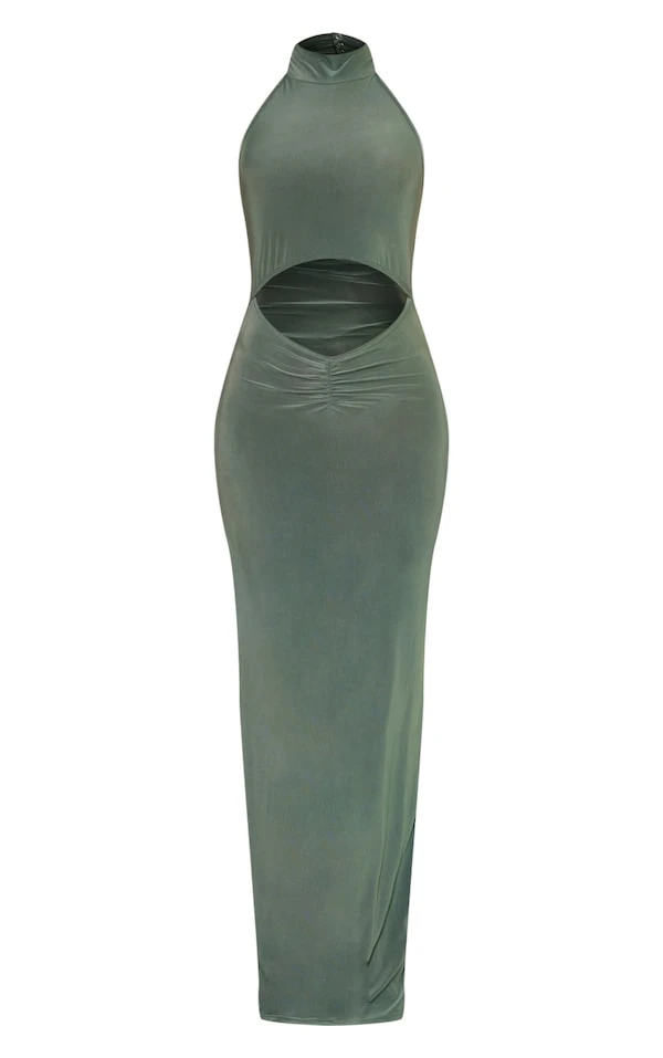 Trop stylée dans cette robe longue ! Sa coupe moulante met votre magnifique silhouette en valeur et on adore son coloris kaki et son design froncé structurant. Plus qu’à ajouter une paire de mules et des créoles épaisses. De toute beauté !