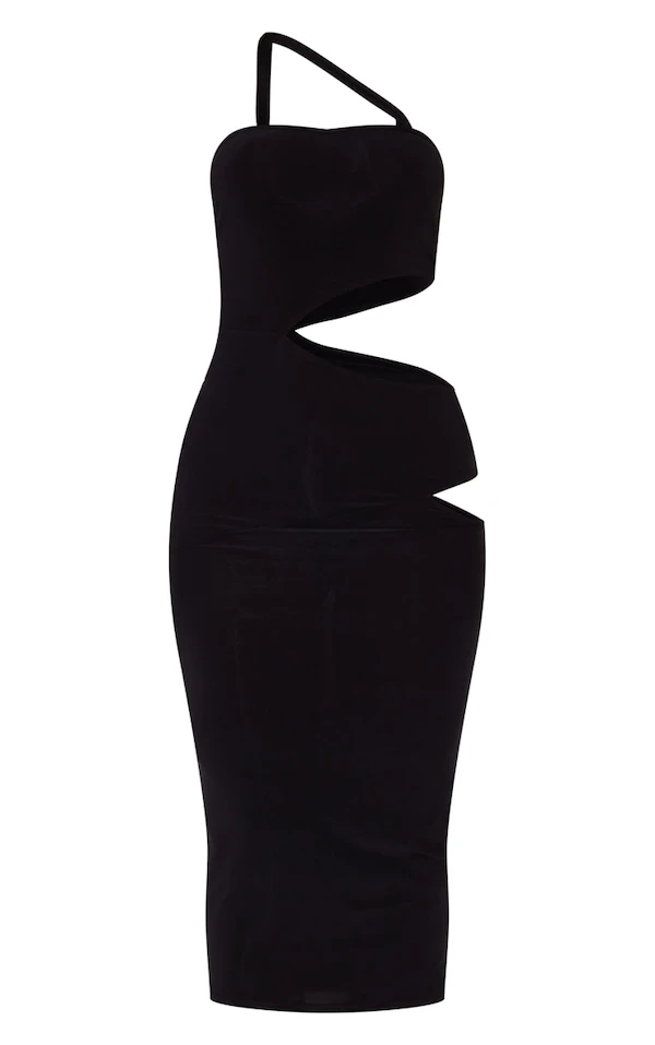 Direct dans le panier cette robe à la coupe longue ! Son coloris noir est parfait pour toutes les occasions et on adore ses lanières et ses petites découpes, elle est juste parfaite. On la porte avec une paire de talons lacés et des créoles fines. Tout en délicatesse.