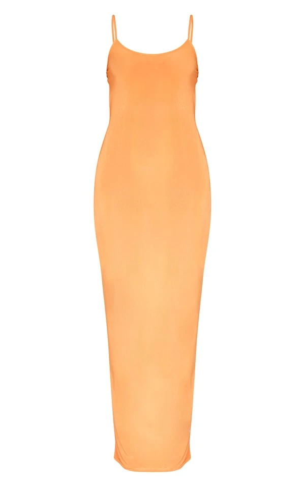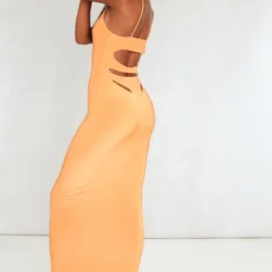 Robe longue moulante orange découpée dans le dos à col rond et bretelles