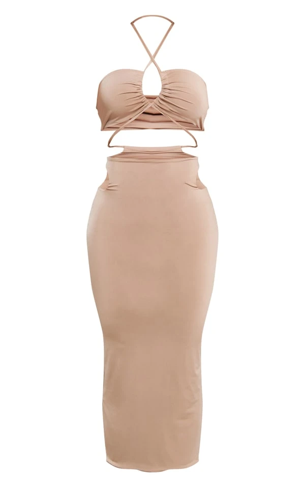 Amazing, cette robe à la coupe moulante flatteuse ! Avec sa couleur taupe qu’on adore et son design croisé au cou, elle nous laisse bouche bée. Notre conseil mode ? Associez-la à une paire de talons transparents et à quelques accessoires. Crush on you !