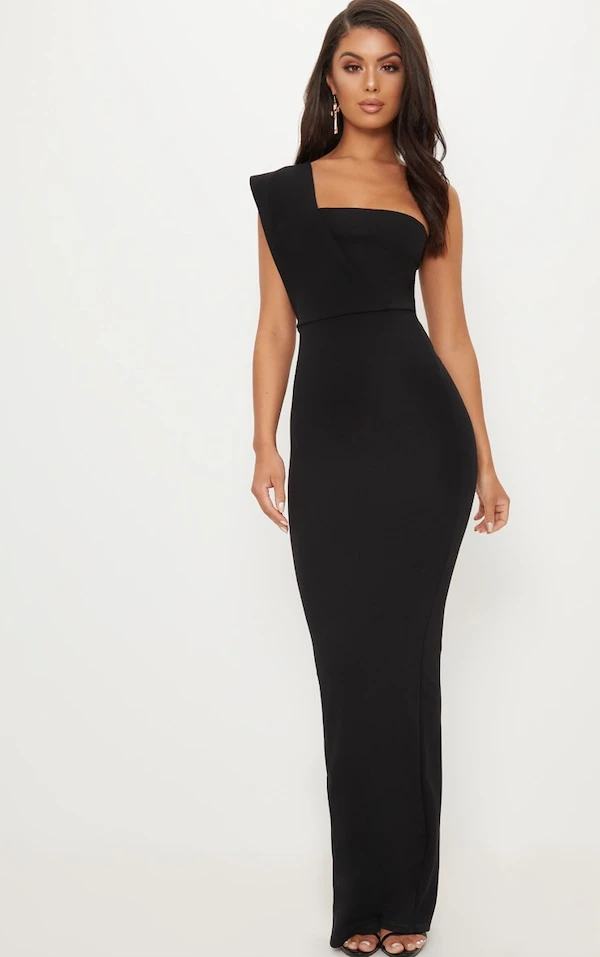 Robe longue noire à bretelle asymétrique
