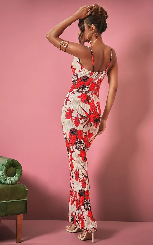 Entre vous & cette robe, c’est l’amour au premier regard ! Avec sa matière plissée, sa couleur nude et son motif à fleurs, elle fait battre notre coeur très fort. On la porte en soirée avec des talons hauts et un max d’assurance.