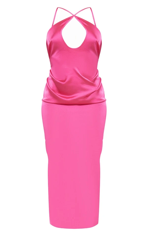 Robe longue satinée rose sucré à bretelles croisées et découpes