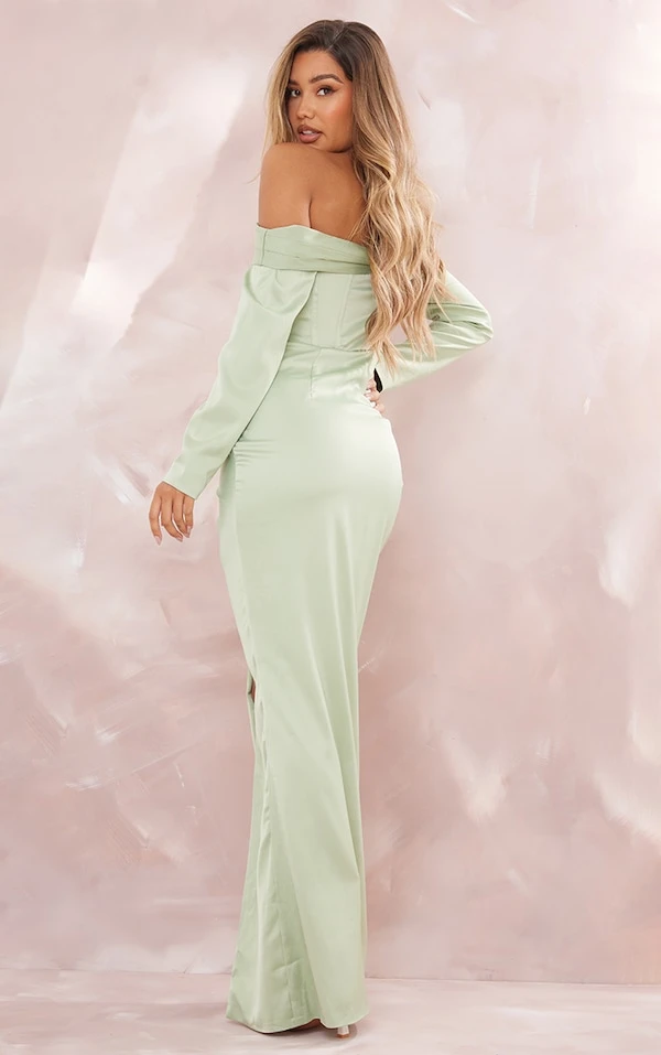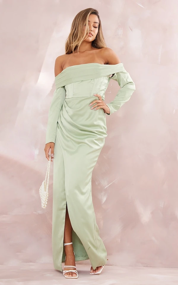 Vous êtes invitée à un mariage dans pas longtemps ? Cette robe est LA tenue qu’il vous faut shopper illico. Avec son coloris vert sauge, son design fendu et son col bardot, elle est super glam et met vos jolies courbes en valeur. Elle s’associe tout simplement à une paire de talons hauts et à quelques bijoux fins. Vous allez faire sensation.