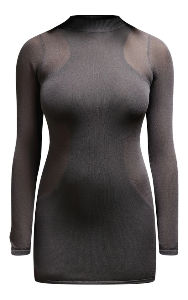 Robe manches longues gris anthracite en maille tricot transparente à doublure au col nageur