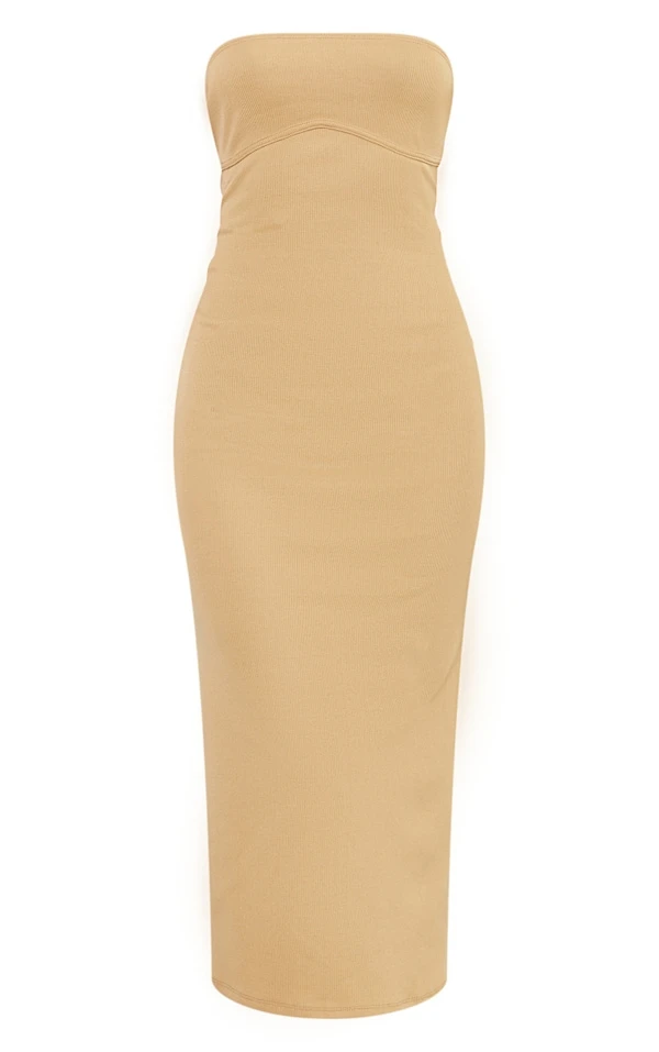 Robe mi-longue bustier côtelée camel à armatures