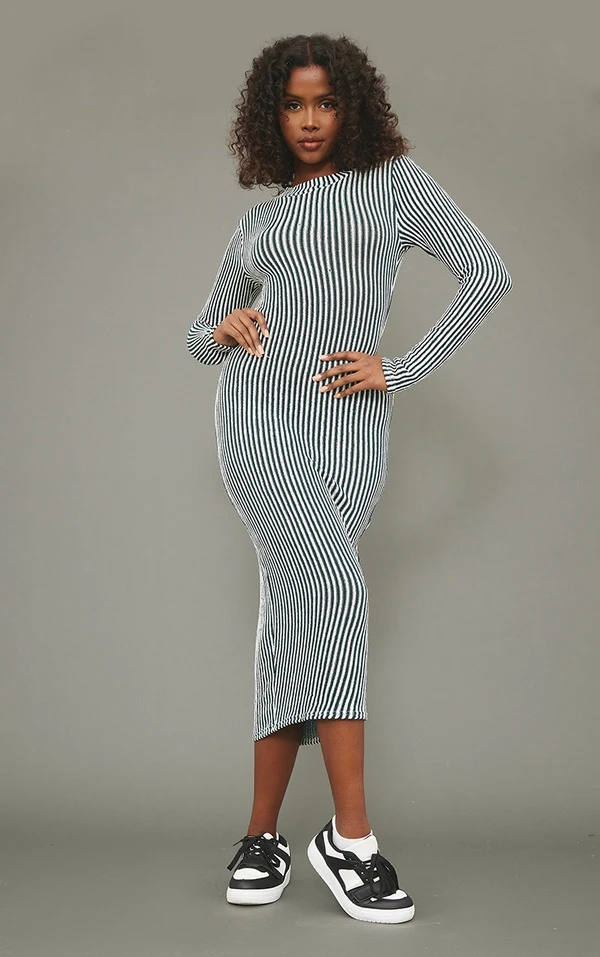 Coup de coeur sur cette robe ! On aime beaucoup sa coupe mi-longue, sa matière côtelée comfy et son coloris bicolore kaki. On vous conseille de la porter avec une petite paire de baskets et un bomber court pour un max de style. C’est si simple d’être stylée !