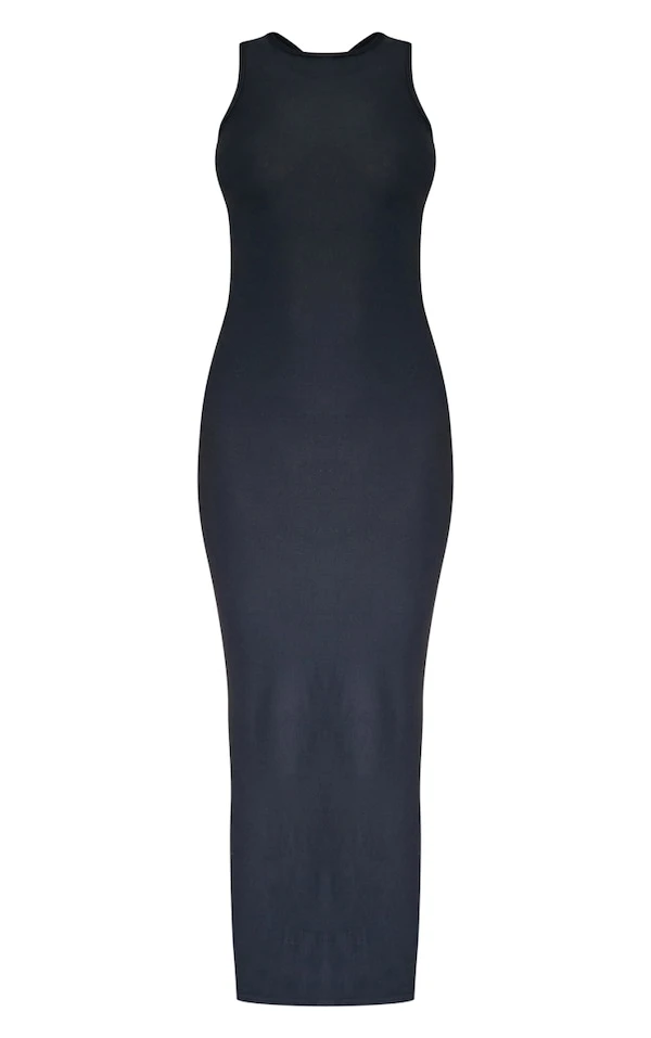 Robe mi-longue douce noire à dos nageur et découpes dans le dos