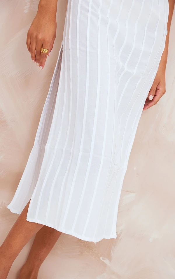 Robe mi-longue effet lin blanche plissée fendue sur le côté