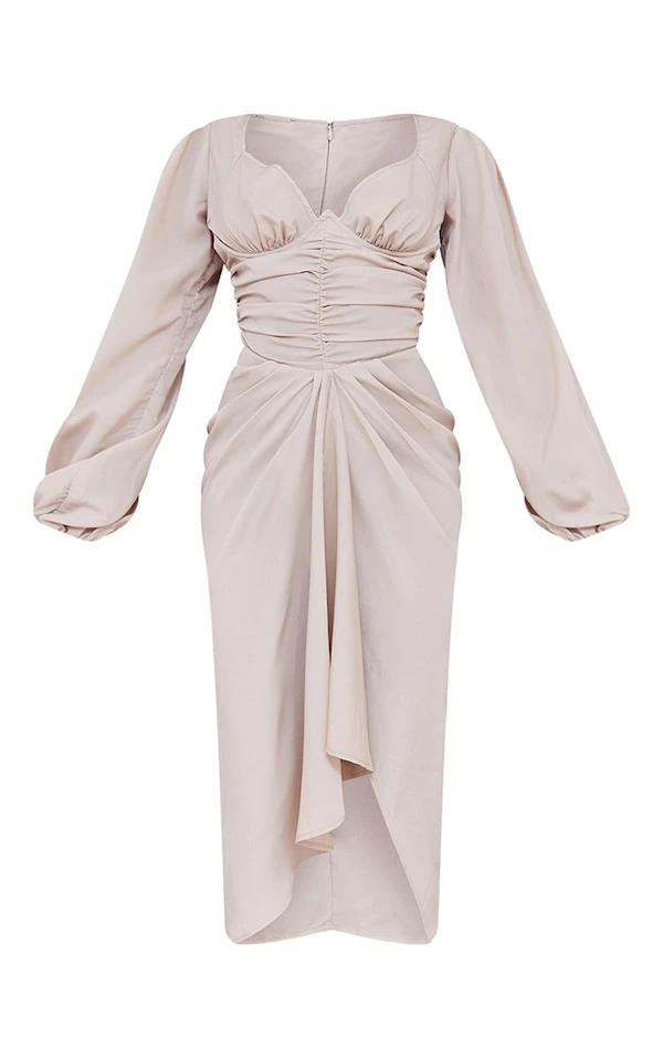 Robe mi-longue froncée gris pierre à armatures