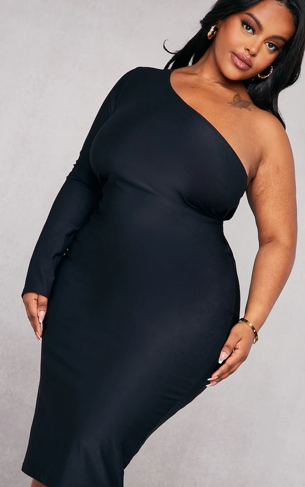 Impossible de se louper dans cette robe moulante. On aime tellement sa coupe asymétrique stylée, son coloris noir canon et son mood parfait pour une soirée. Plus qu’à enfiler une paire de talons et un petit sac. Trop belle !
