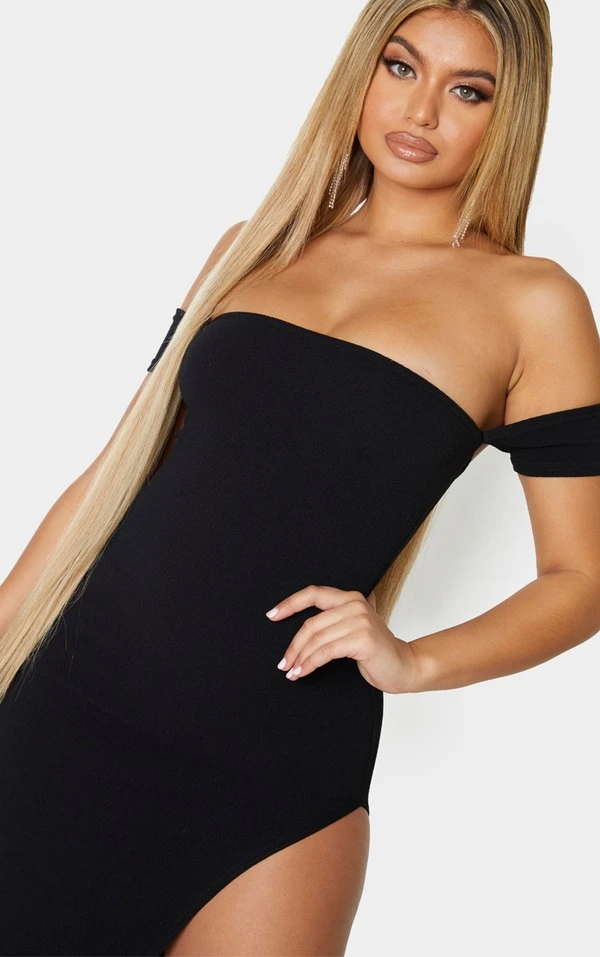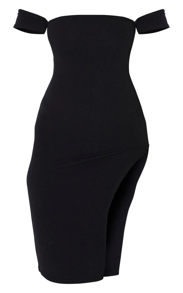 Robe mi-longue noire à fente sur le côté et manchettes