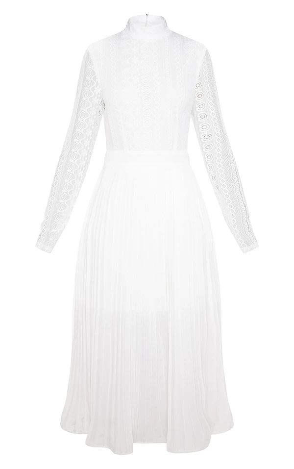 Romantique vibes dans cette robe plissée! Avec son blanc éclatant, sa dentelle et ses manches longues, elle est juste parfaite pour vos occas’ du printemps. Vision cute. On l’associe à une paire de talons et un mini-sac. 3