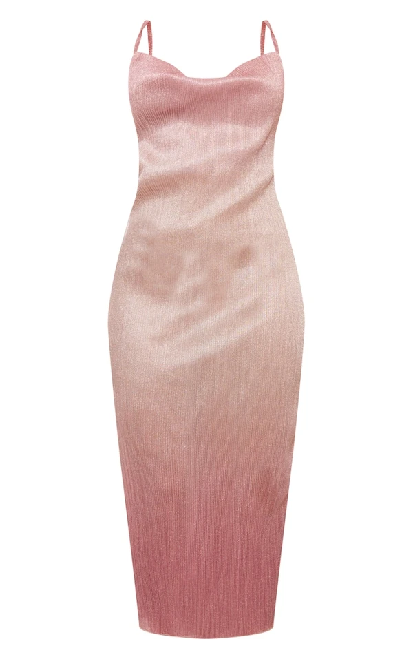 Sublime dans cette robe mi-longue ! On adore sa couleur rose, ses paillettes canon et son col bénitier. Il vous suffit de la porter avec des sandales à talons et quelques accessoires dorés. Vous allez faire sensation !