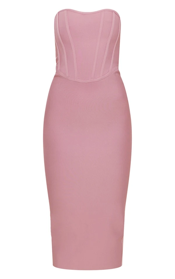 Robe mi-longue rose à détail corset bandage
