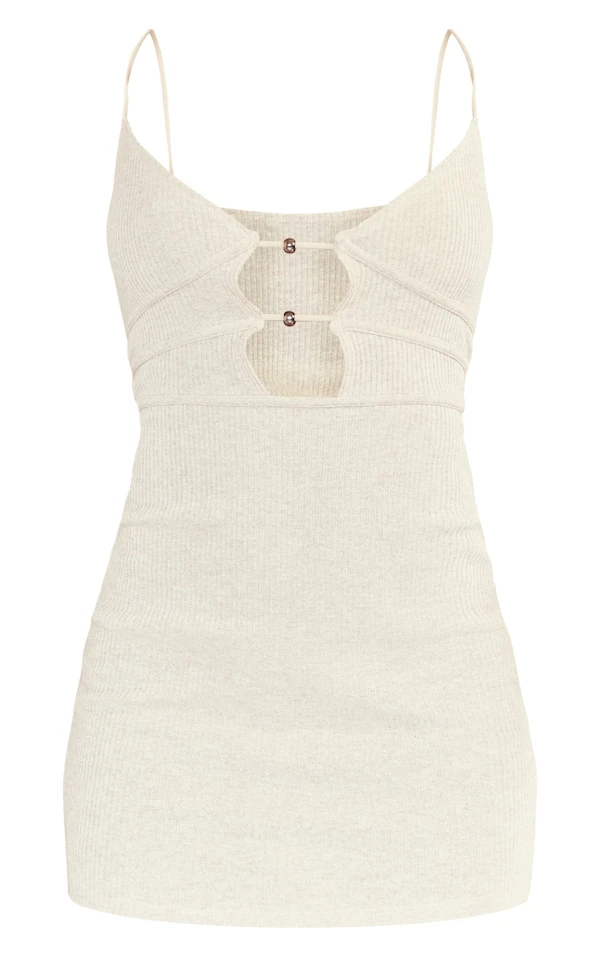 Robe moulante avoine côtelée à détail ourlet et bretelles