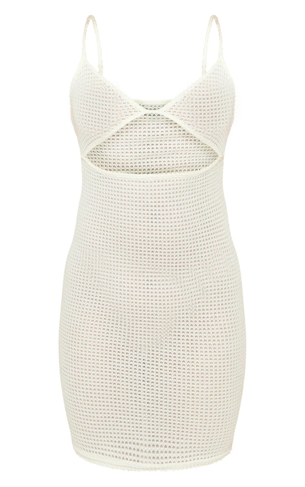 Robe moulante blanche en maille tricot texturée à découpes et bretelles