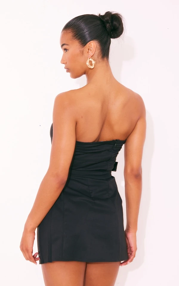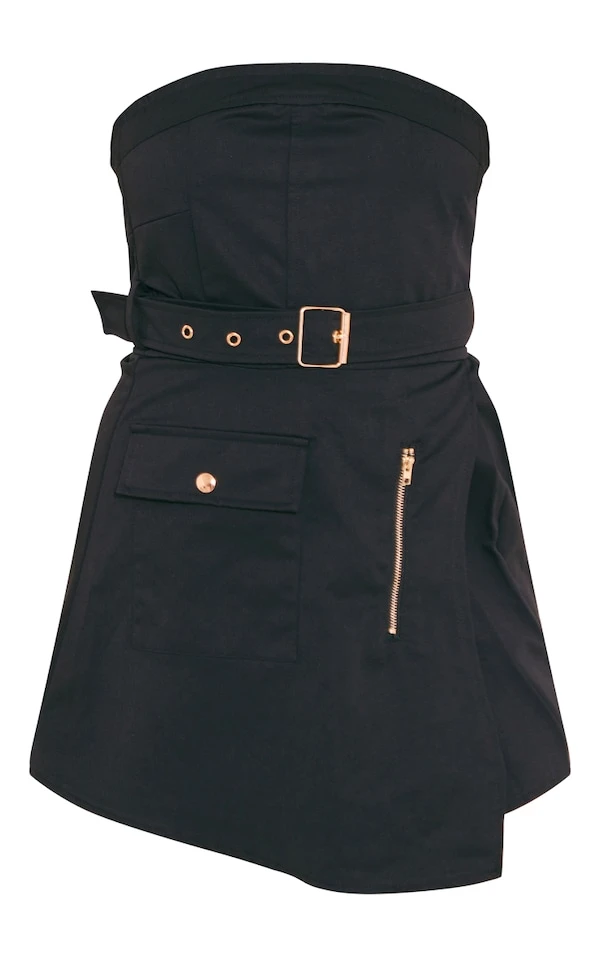 In love de la coupe moulante de cette robe au style cargo. Avec sa matière plissée de couleur noire et son design à ceinture nouée, on l’adore. Pour vous démarquer, portez cette robe avec une paire de sandales lacées et quelques accessoires. Vous avez tout compris à la mode, vous !