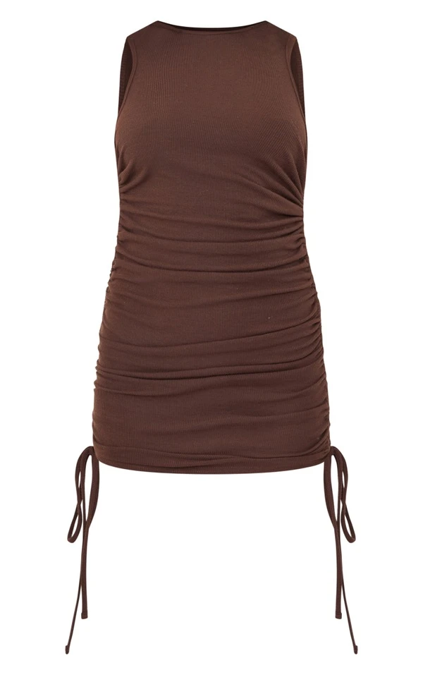 Robe moulante chocolat à dos nageur et fronces