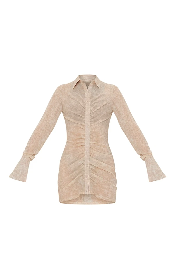 Totalement fans de cette robe moulante. On a un coup coeur sur sa couleur crème, son imprimé indémodable et son design froncé sur le devant que l’on porte avec une paire de sandales et quelques accessoires. On ne verra que vous, c’est dit !