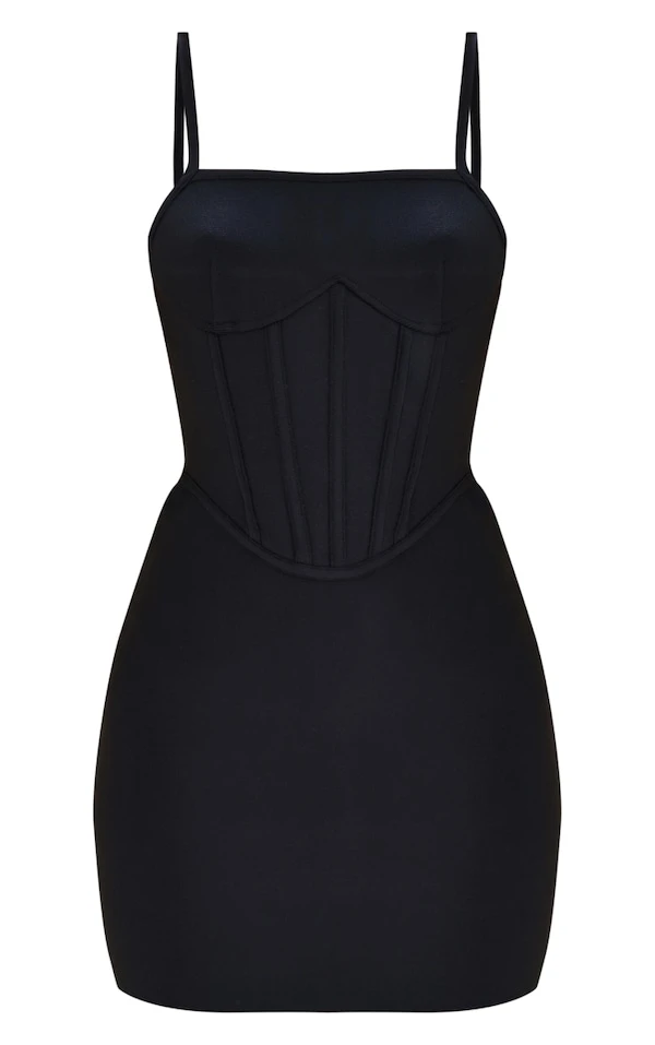 Robe moulante détail corset noire en bandage à bretelles et armatures