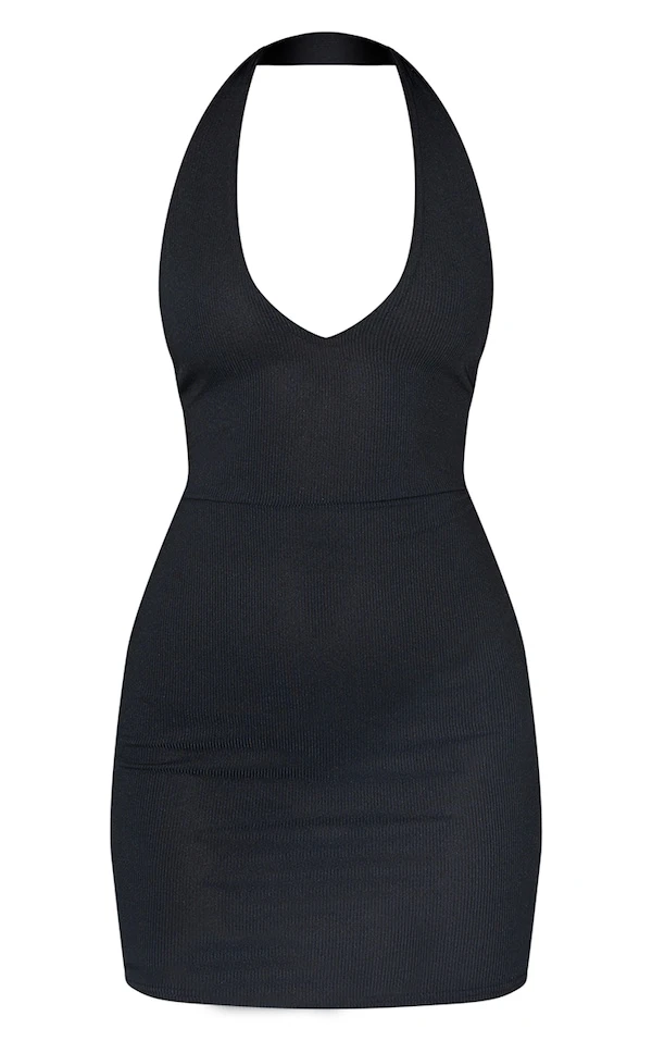 Robe moulante dos nu côtelée noire à nouer sur l’arrière