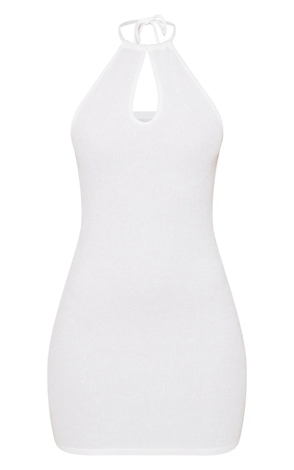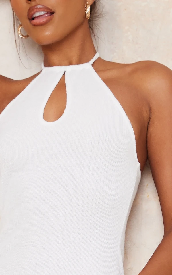 Robe moulante dos nu crème côtelée à découpe goutte d’eau