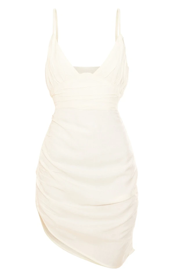 Robe moulante effet lin crème plissée décolletée à bretelles